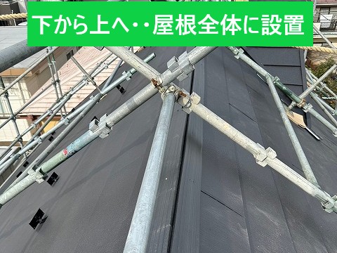 防水紙をしっかり敷き終えたら、次は屋根材の設置です。