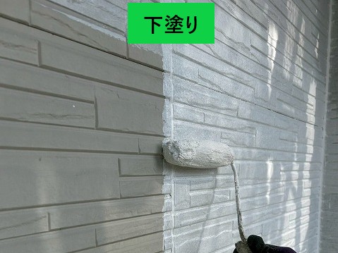 下塗りでは、外壁と塗料をしっかり密着させるための「プライマー」を塗布します。