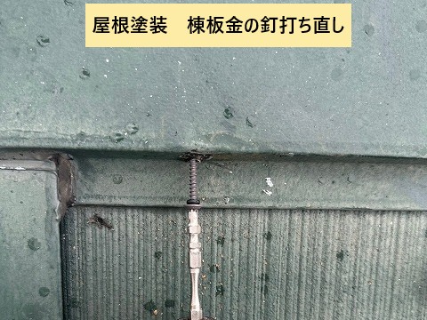 コーキングのひび割れを補修。棟板金の釘を打ち直しました。