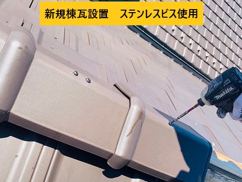 ③ 新規棟瓦の設置(ステンレスビス使用)