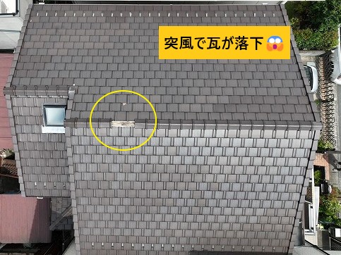 突風が吹いたあと、お隣の方から「瓦が落ちていますよ」とご連絡がありました。