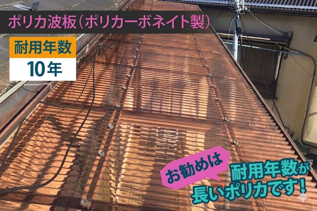 新しく設置する屋根材には、「ポリカーボネート(通称:ポリカ)」をご提案しました。